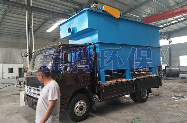 未经处理的污水首先进入曝气区,与微气泡充分混合,微气泡在上升的过程中将固体悬浮物带到水面,刮泥机沿液面运行将悬浮物刮到倾斜的金属板上,再将其推入污泥排放管槽,通过污泥排放管槽流入污泥收集器,刮泥机动力只有0.5KW。污水净化后在排放前会经过斜板下方的溢流槽,溢流槽用来控制气浮槽的水位,确保槽中的液体不会流入污泥排放管道,开放的咽流管道从曝气段沿着气浮槽的底部伸展。在产生微气泡的同时,涡凹曝气机会在有回流管的池底形成一个负压区,这种负压作用会使废水从池子的底部回流到曝气区,然后又返回气浮段。这个过程 确保没有进流量的情况下,气浮仍不断进行。本设备的处理量为5-500m/每小时,处理费用为0.3元/吨废水左右。
